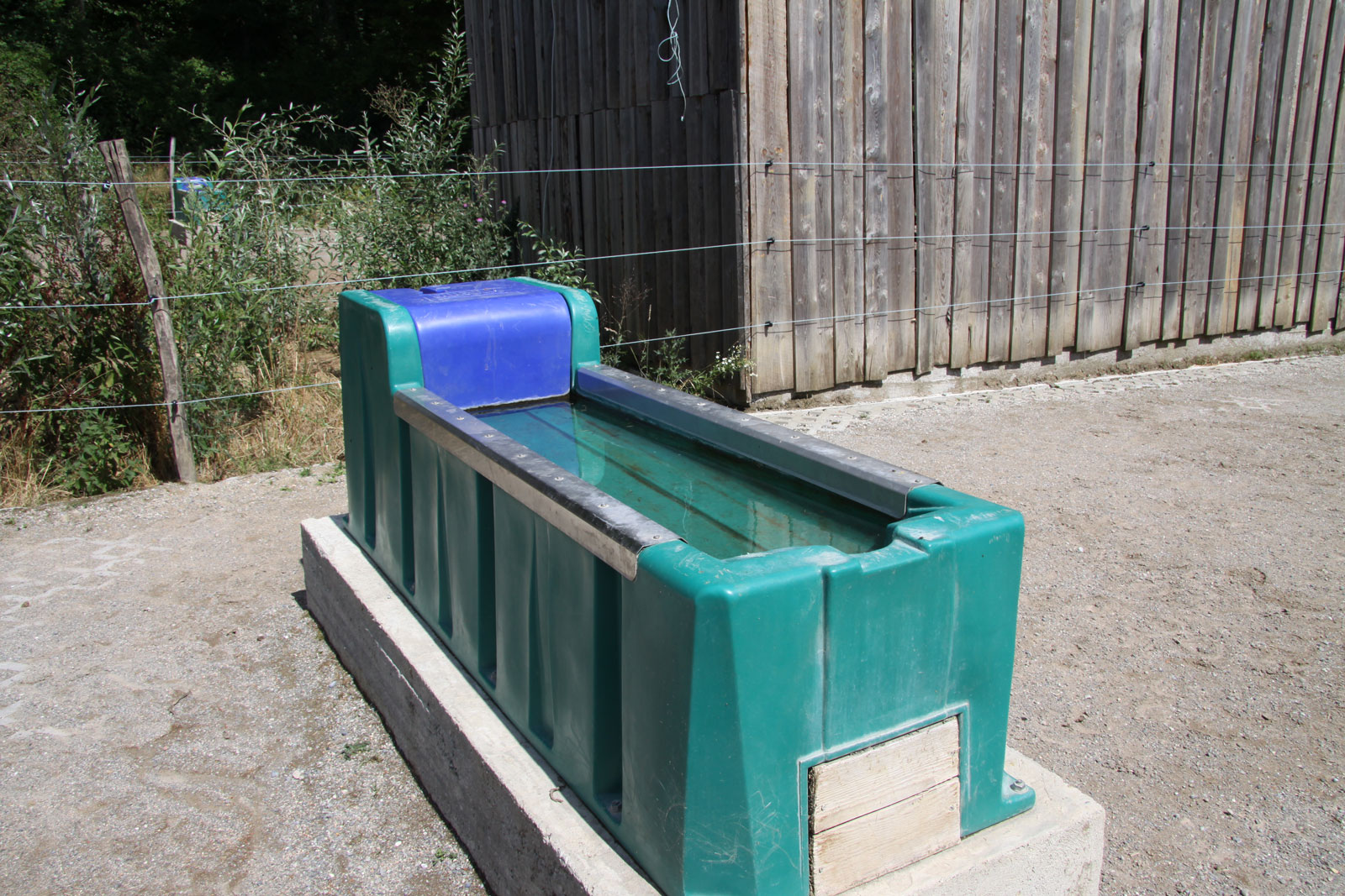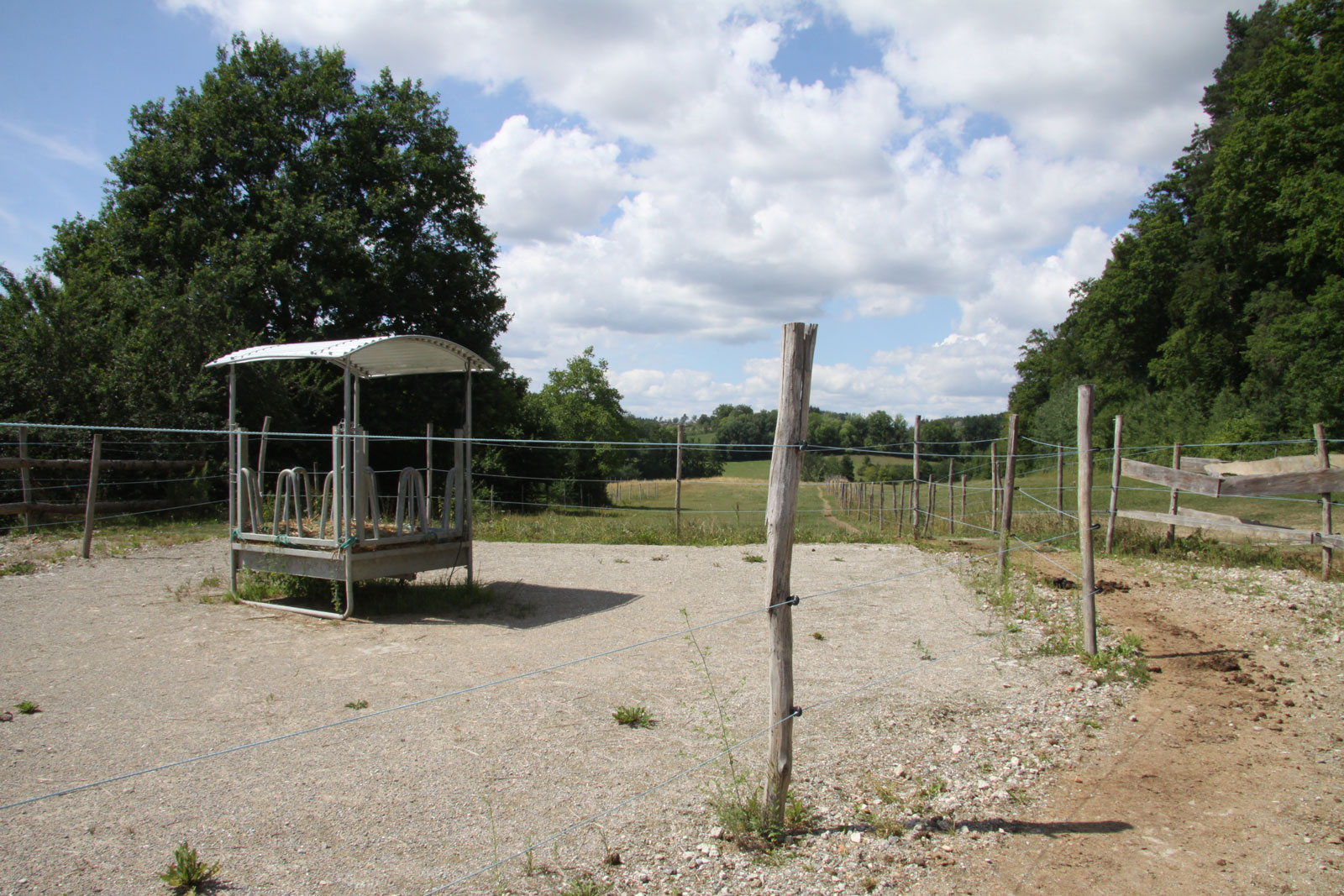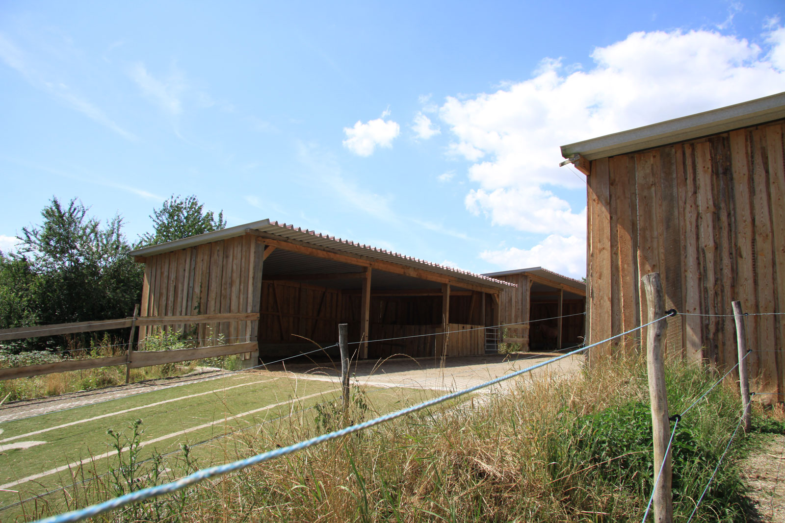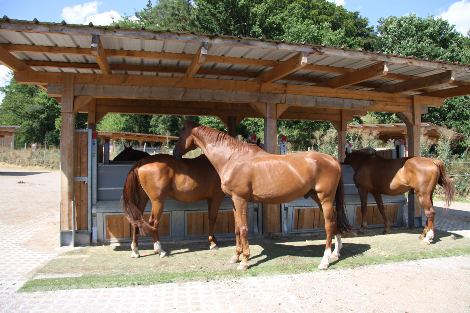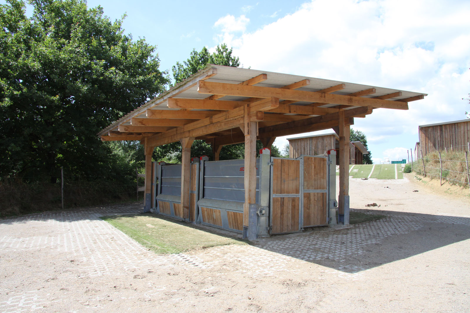 Eine offene Tränke, aus der von zwei Richtungen die Pferde in vollen Zügen trinken können, rundet das Bedürfnispacket vollumfänglich ab. Die Liegehallen mit Waldboden laden zum liegen und entspannen ein. Bei Wind und Wetter können die Pferde im trockenen an den HeuTimern stehen, im trockenen ihr Kraftfutter zu sich nehmen, oder sich auf mehr als 2.000 m² befestigte Bewegungsfläche frei bewegen.