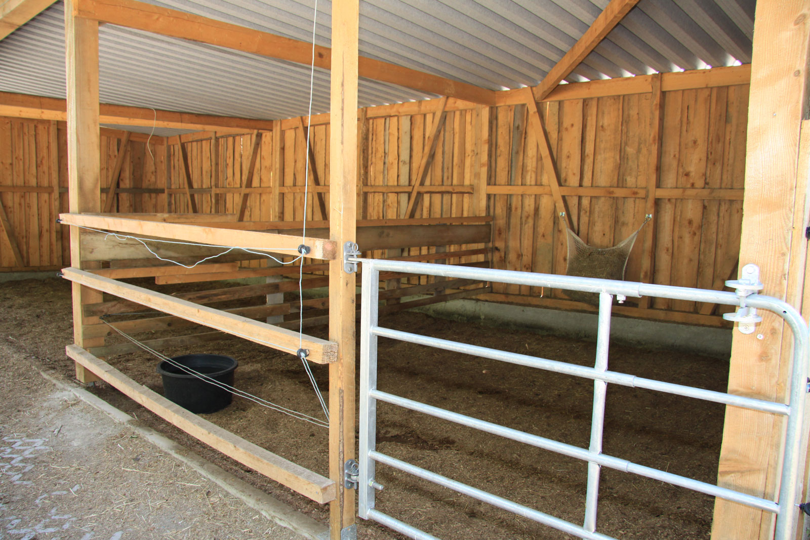 Aktivställe sind Bewegungsställe in denen Fressplatz, Liegebereich, Tränke, Kraftfutterstation und Koppel für mehr Bewegungsanreiz weit auseinander liegen. Wir haben 2 Gruppen, eine gemischte Herde und eine reine Wallachgruppe.