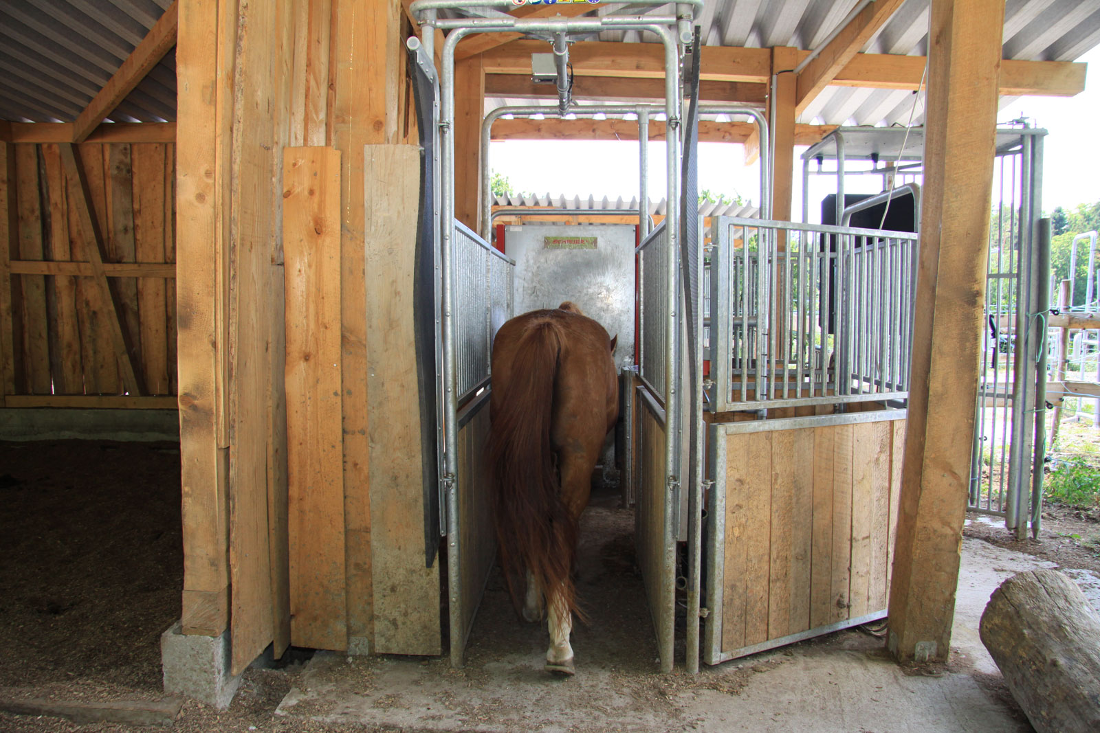 Für die Pferde, die aber mehr Heu benötigen, gibt es hierfür einen extra Ad Libitum Bereich (VIP-Bereich) mit 24h Heu. Die Berechtigung für diesen Bereich erhalten die Pferde über die Selektionsstation.